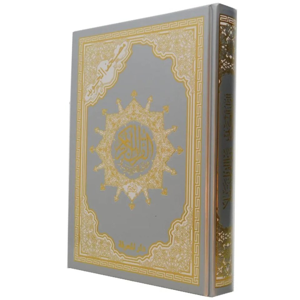 حجم عملي 12×17 سم مع غلاف فضي متين وتذهيب حراري نافر، مثالي للاستخدام الشخصي أو كهدية.
