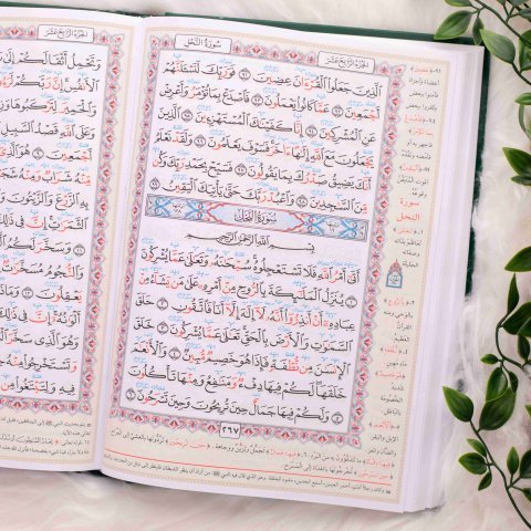اتقن فن التلاوة واحصل على فهم أعمق للقرآن مع مصحف معلم الترتيل والتفسير. مثالي لدراستك الشخصية أو كهدية مميزة. اطلبه الآن ورفع من تجربتك القرآنية!