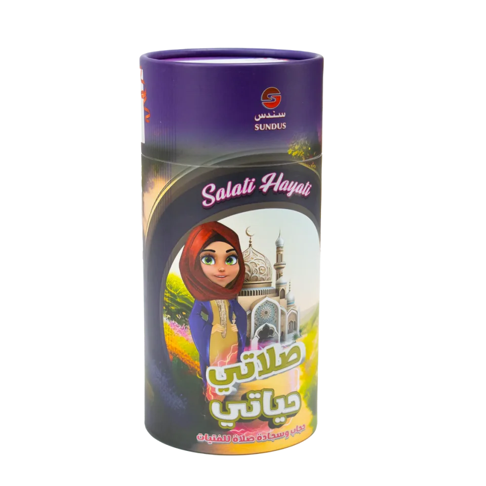 ألهمي الفتيات الصغيرات حب الصلاة مع مجموعة "صلاتي حياتي". تتضمن المجموعة سجادة صلاة ناعمة، حجابًا جميلًا، وخاتم عدّ للذكر، جميعها مقدمة في علبة تخزين أسطوانية أنيقة، مما يجعلها هدية مثالية.